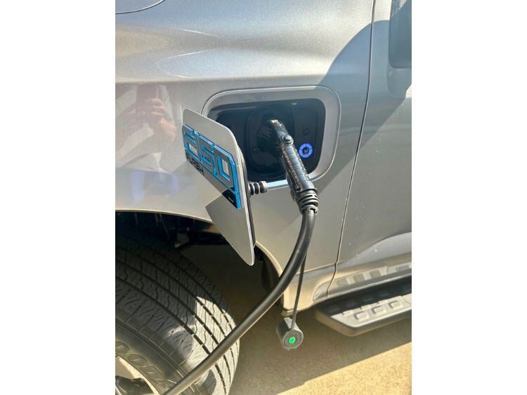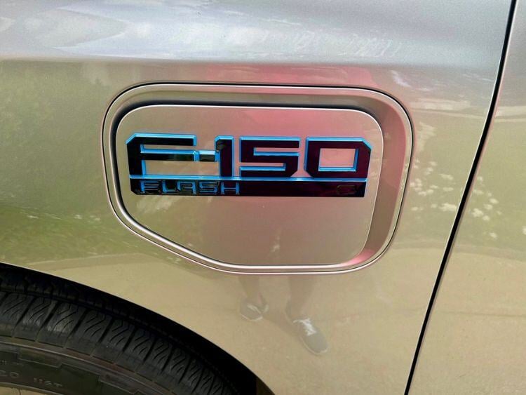 This truck looks pretty much like any F-150 except for the massive LED lighting that surrounds the grill. New for 2024 on the Flash is a new grill design, redesigned front fenders, and a re-do of the charging port door.
