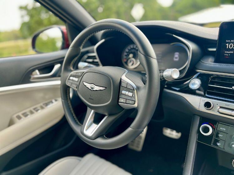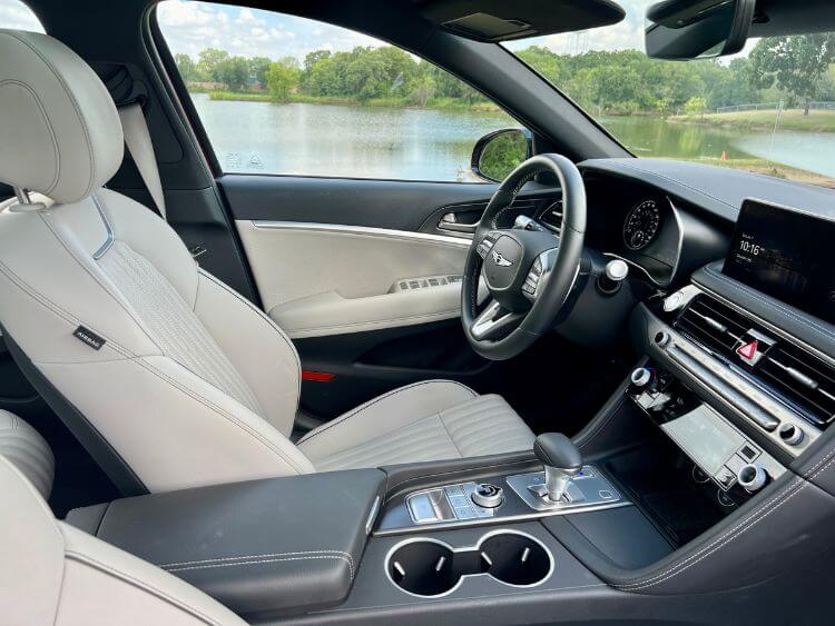 Genesis' luxurious interiors are, in a word, wonderful. My test vehicle's fog gray two-tone interior compliments its exterior hue perfectly. My Sport Prestige model swaps leatherette for leather seating surfaces. Soft-touch surfaces are everywhere including on the leatherette-wrapped dash.