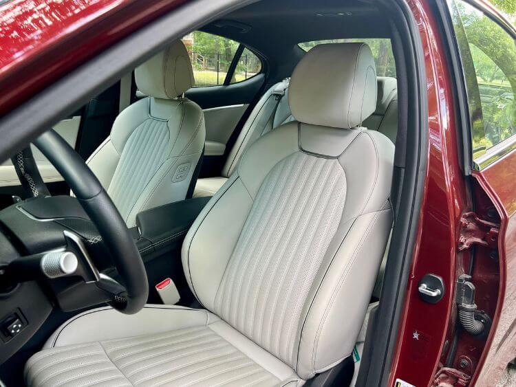 The driver's seat is supportive yet comfy and both front seats are heated and ventilated. The driver's seat does not feature the seat bolster and cushion extender available on the 2024 3.3.T Sport Prestige model I've reviewed, nor the quilted seats and door panels. My Sport Prestige model is, however, equipped with a leather-wrapped, heated steering wheel. An 8-inch digital driver cluster also features analog elements.