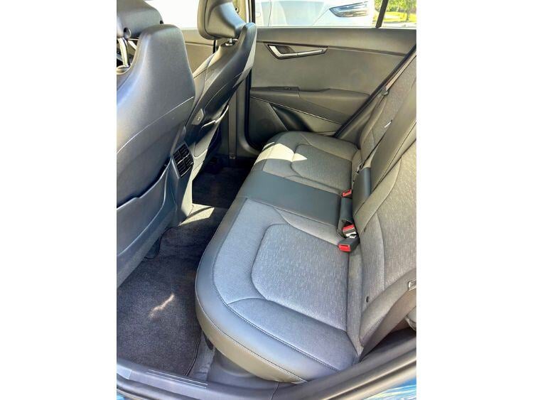 Inside, you find mostly recycled materials and a very uncluttered, clean interior. Seats are made from Vegan materials, and the center of the seats is made from eucalyptus leaves. My only complaint is the large amount of gloss black materials on the doors and the center console, but you don’t get that on the lower trims. It is very difficult to keep clean and shows fingerprints very badly.