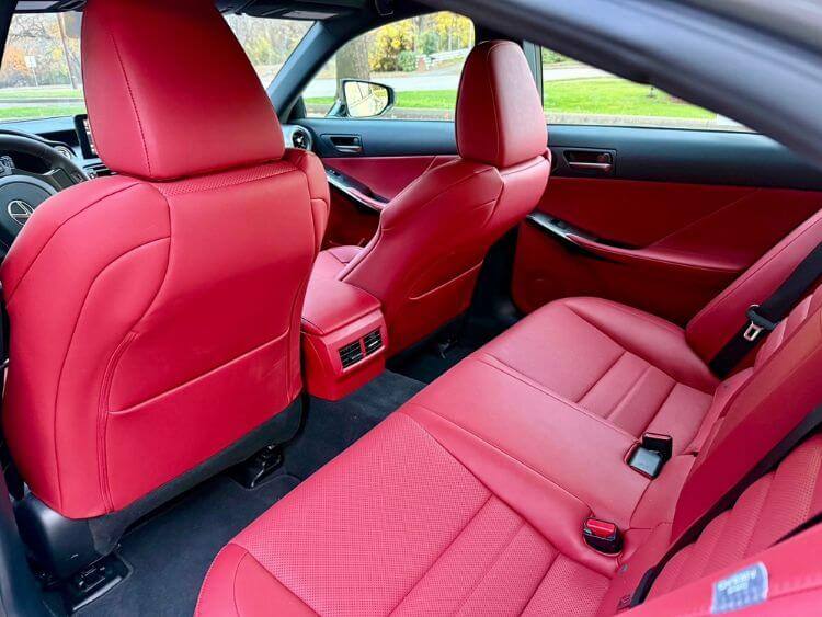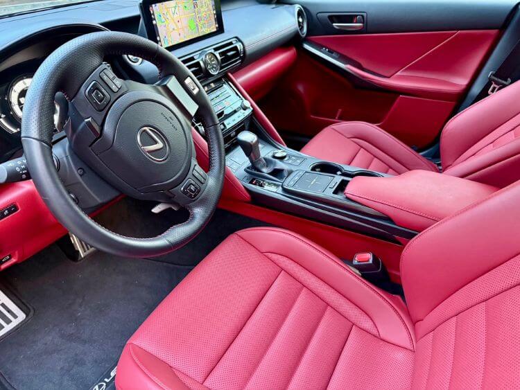 Heavy-stitching abounds but it doesn’t jump out at you because it is red as well. The seats are NuLuxe (faux leather) but you would never know a cow didn’t die to make the beautiful seats. The entire cabin is filled with luxury materials that are soft to the touch. The F Sport steering wheel is heated and is also very soft to the touch and fits nicely in my hands.