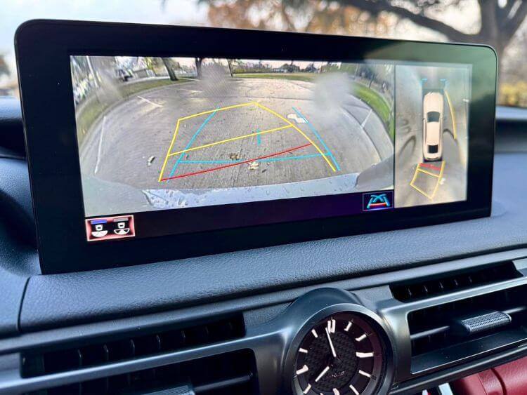 On the safety side, you get the Lexus Safety System 2.5. That includes lane tracing assist, road sign recognition, pre-collision assist with pedestrian detection, adaptive cruise control, lane departure alert with steering assist, intelligent high beam headlights, blind spot monitor, rear cross-traffic alert, parking assist with automatic braking, and the terrific panoramic view rear camera.