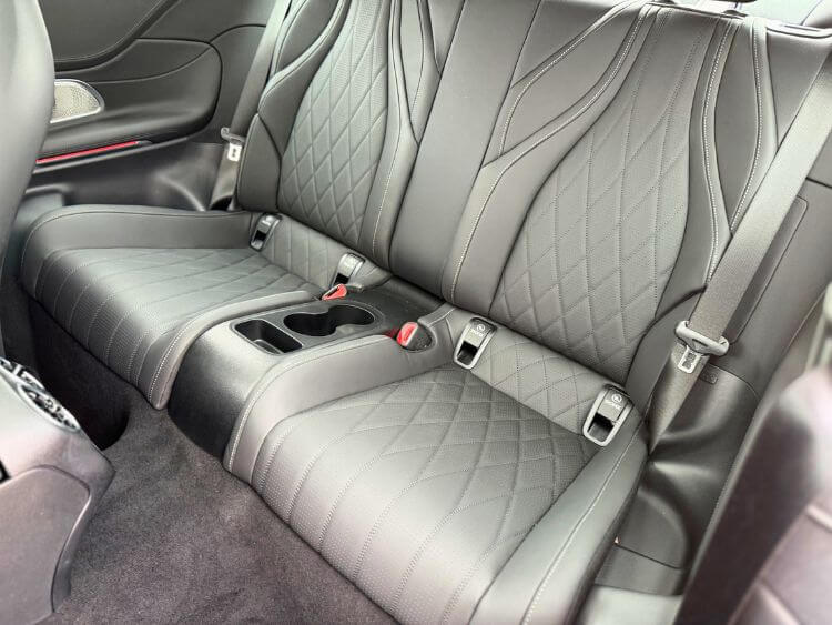 Back seat room was larger than I expected, but still only suitable for two people that are not overly large. Headroom is always sacrificed with the swooping roof, but legroom seemed OK. Back seat passengers get their own air vents, a USB-C for charging, and a pull-down armrest with cup holders.