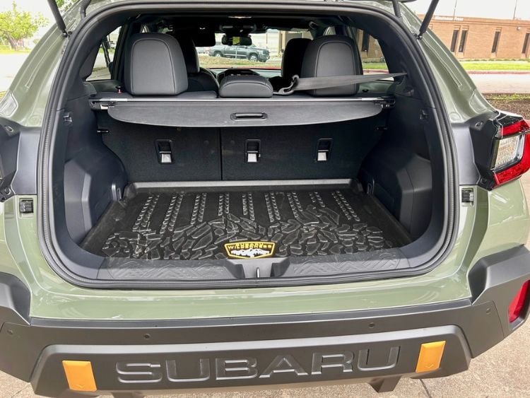 The interior is nicely done with StarTex seats (simulated leather for cleaning purposes) that are bolstered and stitched. A large Subaru Wilderness badge is emboldened into the front headrests and the front seats are heated, but not cooled. The analog gauges are easy to see, and there is a driver info center between the tach and speedometer that operates from the steering wheel.
