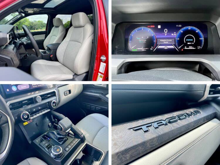 The Limited benefits from soft-touch materials on the dash and door panels along with great-looking walnut burl wood interior accents. Tacoma badging on the passenger side dash area looks great.
