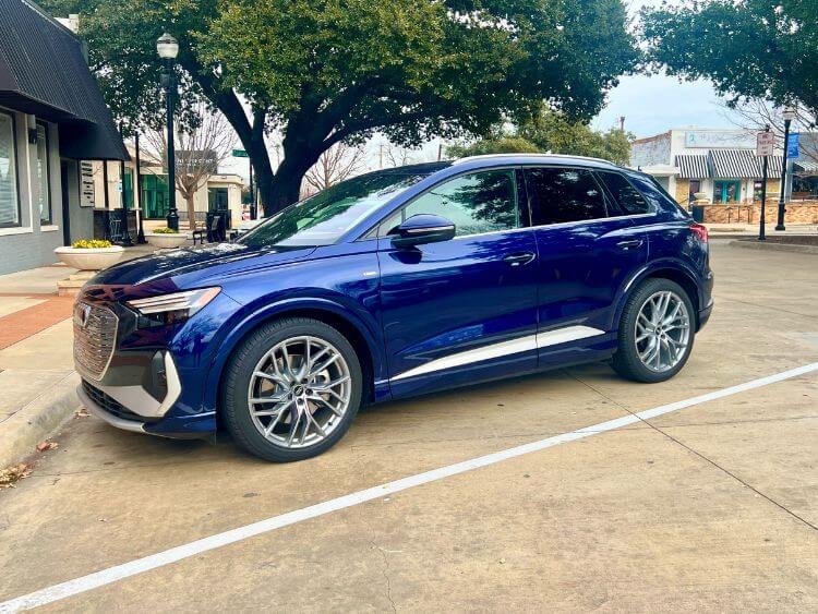 The Q4 e-tron 55 will take you up to 258 (up 22) miles on a single charge. Along with increasing range mid-2024, Audi also boosted charging times and cites a 10-80 percent charging time in 28 minutes using DC Fast Charging. It's 9 hours using a Level 2 charger.