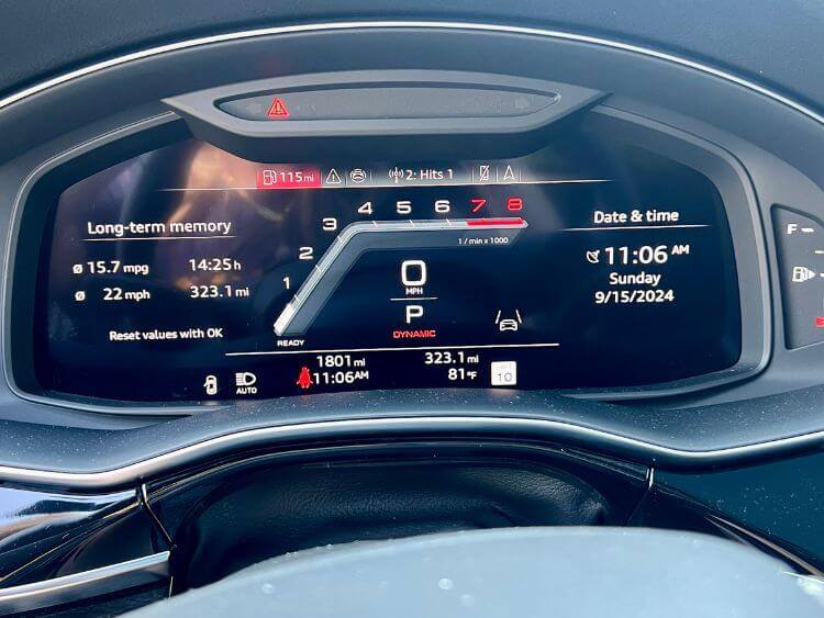 A three-spoke steering wheel looks and feels great. Audi's 12.3-inch Virtual Cockpit Plus continues to be one of my favorites in the industry. The graphics are fantastic and you can display a map full view. I also love the font type and size, and the entire display is bright and easy to read. The entire thing is just stellar.