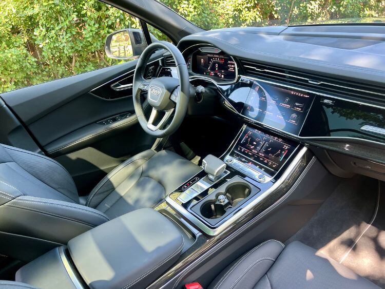 The Q7's modern and tech-focused interior is every inch the Audi you expect. It's very roomy, well-designed and expertly crafted down to the impeccable stitching. It's luxurious in a sporty, refined way without being opulent. High quality switchgear and high-gloss Gray oak wood inlays look upscale and soft-touch materials abound.