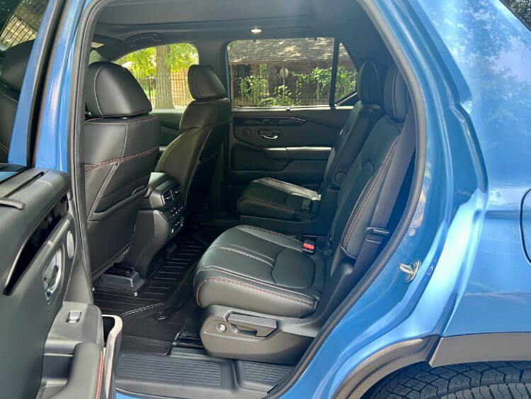TrailSport features second-row reclining captains chairs. They are cushiony, but on the smaller side as there is a pass-through area between them to the third row. My other observation is that the armrests seem too high.
