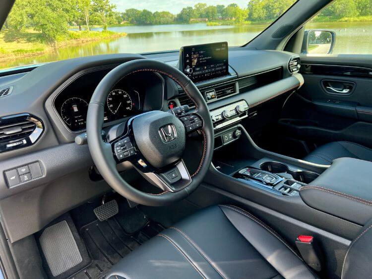 The Pilot's interior scores high marks with me for its comfort, design and layout. Its exclusive to the TrailSport synthetic leather seats look and feel great, and they're purposely durable to handle adventure, as are the all-season floor mats which also feature TrailSport logos.