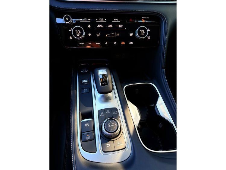 The QX60 has a great stubby shift handle and to the right of that is a wireless phone charger, and two cupholders. To sum it up, Infiniti made the front compartment comfortable, intuitive, and everything is easily within reach.