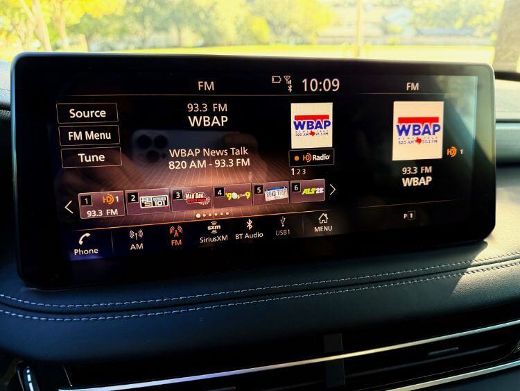 Center dash is another 12.3-inch touchscreen that operates the Bose sound system, voice recognition, the navigation, Bluetooth and Wi-Fi, Android Auto, wireless Apple CarPlay, and real-time fuel prices, traffic, weather, and sports scores. If you prefer not to use the touchscreen there is a knob on the center console to scroll through all the functions of the infotainment system. There is also a knob for the sound system volume and two knobs for the dual climate controls.