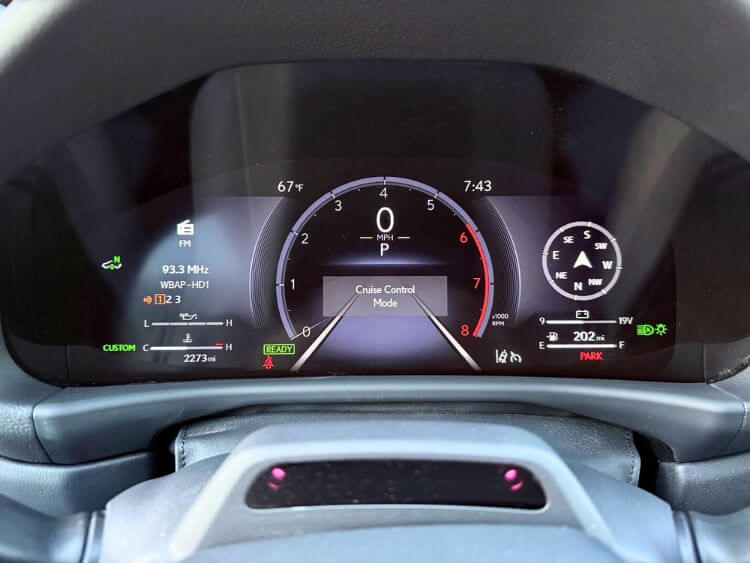 As you sit behind the heated, power tilt, leather-wrapped steering wheel and hit the start button, a colorful gauge cluster lights up. You can configure it many different ways, but right in the middle is a tachometer and a digital speedometer. It is simple to read and if you want even more info, like traffic sign recognition, just look through the windshield to see the huge head-up display.