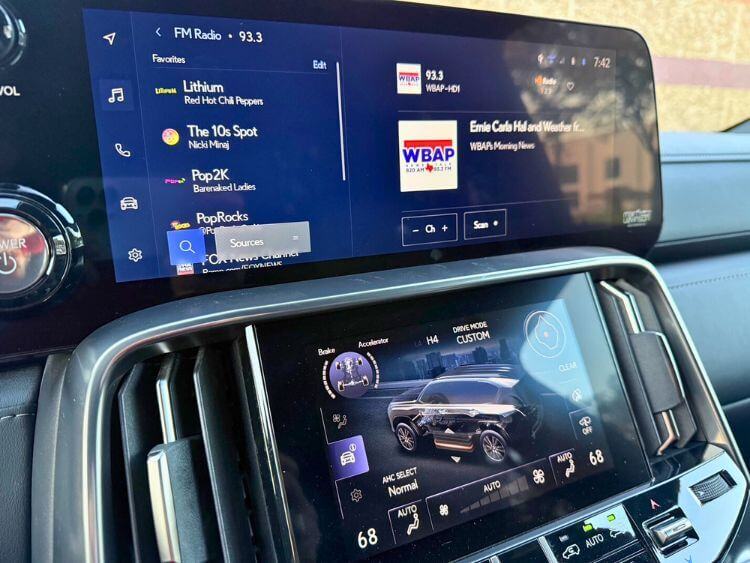 Moving over to the center dash of the LX, there is a 12.3” Lexus Interface infotainment screen that operates the Bluetooth, Wi-Fi hotspot, the Mark Levinson Premium sound system, navigation, voice recognition, vehicle settings, and wireless Apple CarPlay and wireless Android Auto. The system is incredibly simple and lightning fast, but not as colorful as most.