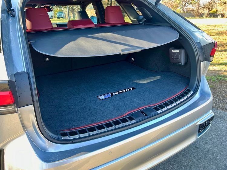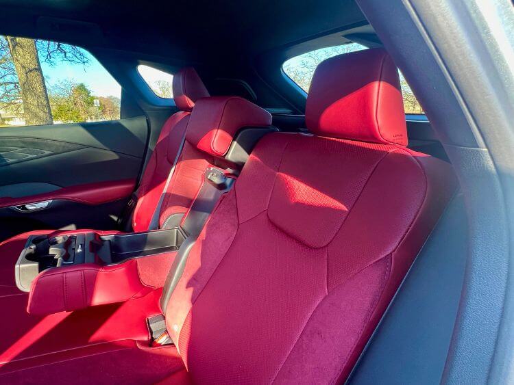 One of the great things about the RX 500h is its optional power-reclining second row outboard seats, which you can operate from the cargo area as well as the multimedia system. The seats are also heated and ventilated. On the down side you lose a lot of headroom in the 2nd row due to substantial stadium seating. A center console armrest features storage space and small extending cupholders. Passengers in the second row can charge their mobile devices on two USB Type-C outlets or an available single AC power outlet. Cargo space is great for a SUV this size.