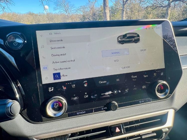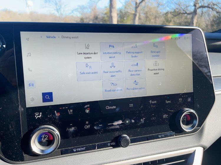 A 14-inch high-definition touchscreen runs Lexus' terrific and easy to use multimedia system. It's compatible with wireless Apple CarPlay and Android Auto, along with Amazon Alexa, Bluetooth and more. The touchscreen delivers great graphics and is very responsive. Map quality looks terrific, too, but rear view camera quality could be improved. This vehicle is also equipped with the available Panoramic View Monitor.