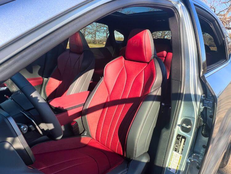 The perforated-leather F Sport front seats with enhanced side bolsters are fantastic, super comfortable, and both front seats are heated and ventilated. F Sport aluminum pedals greet your feet.