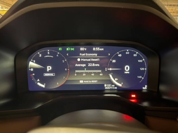 Options on my review vehicle include: $795 for the Moonstone Gray paint, the $3,050 Premium package which has semi-aniline premium leather in Brick Brown, headup display, the Yamaha Ultimate sound system, two-tone roof, and a digital rearview mirror with rear camera and HomeLink. The Welcome Package is only $185 and you get a tray mat, carpeted floor mats, and a touch-up paint pen matching the body color.