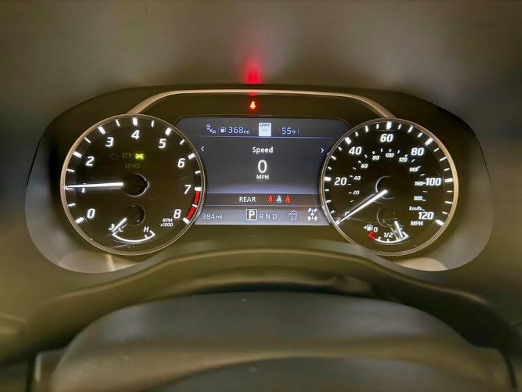 As you sit, there is a colorful 7” gauge cluster and a driver info center that works from the heated tilt steering wheel. A large, round, tachometer sits to the left, and a matching speedometer on the right. In the middle I chose the digital speedometer for most of the week, and it displays traffic signs, including the speed limit.