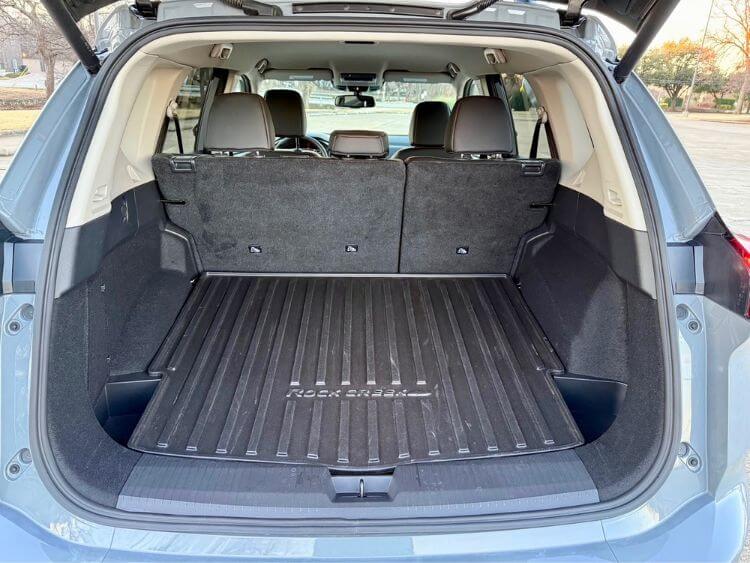 To operate everything, the infotainment system is center dash, up high, which is also 8” and colorful, too. The Rogue is loaded with new tech featuring enhanced voice recognition, wireless Android Auto, wireless Apple CarPlay integration, Wi-Fi, and convenient USB-C ports. The cameras are fantastic, especially the 360-degree view that circles the Rogue to make sure everything is good to go. The Rock Creek has a front camera as well when you go to off-road mode.
