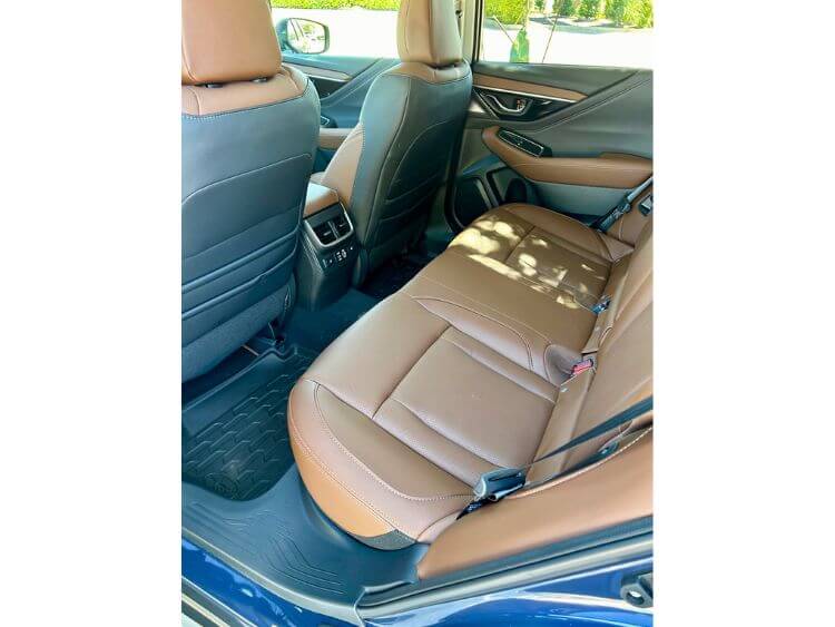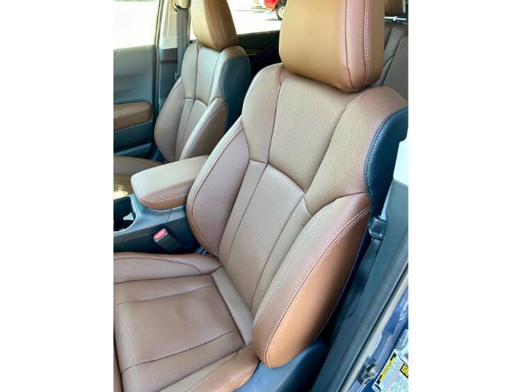 As you enter the cabin, you notice the premium Nappa leather seats which feature slight bolstering, a lot of stitching, and for the driver there is a pull-out thigh support. The seats are very comfortable, and both front seats are power and also heated and cooled. There are a lot of two-tone, soft touch materials throughout, giving the Outback a real luxury feeling.