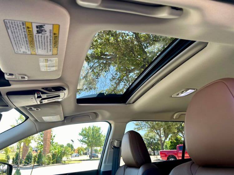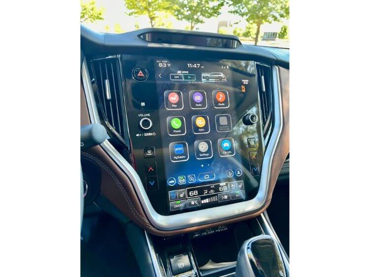 Around the rearview camera mirror (that works great), you’ll find the Eyesight Safety System, something I talk about on the radio all the time because to me, it is the best one out there. You can’t see it from inside, but outside you see two cameras mounted high on the windshield. The cameras monitor traffic movement, optimizes adaptive cruise control, and warns you when you're swaying outside your lane. The Automatic Pre-Collision Braking feature can even apply full braking force and bring you to a complete stop in emergency situations.