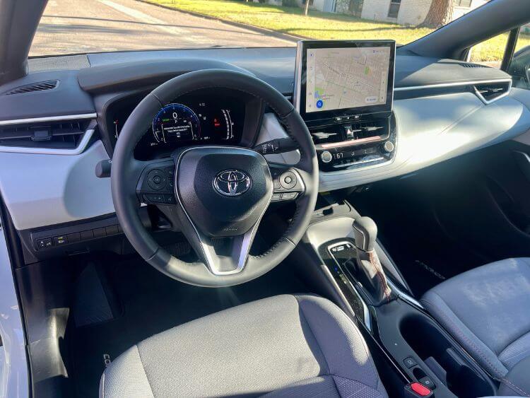 Contrast stitching can also be found on the dash, doors and leather gear shift knob. The leather-wrapped steering wheel has a great fit and finish and silver trim throughout the cabin adds a dose of polish. The FX also marks the Corolla's debut of a larger 10.5-inch Toyota Audio Multimedia screen that protrudes upwards from the center dash.