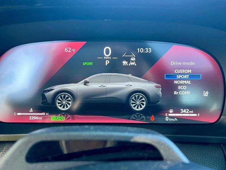 Cabin technology is great in the Crown which features two 12.3-inch screens. One is for the digital driver display, and wow are the graphics terrific. The other 12.3-inch screen is for the very responsive multimedia touchscreen, which runs the terrific Toyota Audio Multimedia system. Both the graphics and map quality are great. The system is compatible with Wireless Apple CarPlay and Android Auto and can receive over-the-air updates. Toyota's 'Hey Toyota' Intelligent Assistant is well-done, too. It helps you control things like heated seats using voice command. The Platinum is also equipped with a Panoramic View Monitor and 11-speaker JBL audio system.