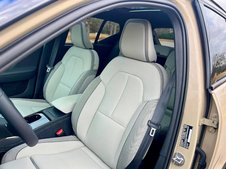 The commitment to quality materials and craftsmanship shines through in the cabin. While refined, it's approachable. The cabin features driftwood woodgrain inserts and one of Volvo's leather-free upholsteries - Dawn Fusion Microtech/Textile. The suede-like material is made from recycled polyester, and looks and feels upscale.