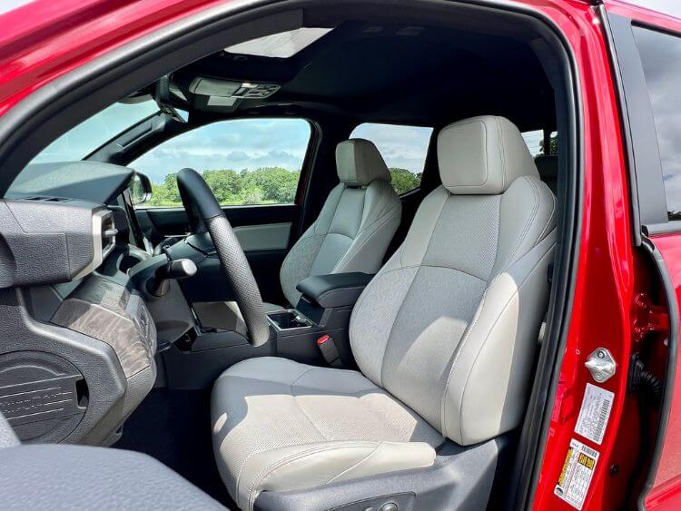 The new Tacoma's comfortable, user-friendly cabin melds an old-school rugged vibe with a new refinement. The top-of-the-line Limited trim sports patterned SofTex-trimmed front seats that are 8-way power, heated and wonderfully ventilated. They are cushiony and on the slimmer side with side bolstering.