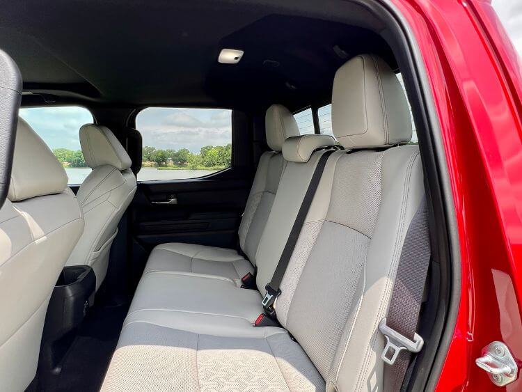 If I had a bone to pick with the new Tacoma, it would be the lack of room in the 60/40 split second row. The seats are cushiony, yes, but they are also stick straight. Which I guess is a plus if you're trying to work on your posture. But it could get uncomfortable for some, and head-room could be an issue for those very tall. The lack of A/C vents didn't really concern me as it's not a large pickup, plus there's a power rear window. Also, there's more plastic on the door panels back here, but that's not really unusual. On the plus side, there are nice soft-touch seat backs for passengers to gaze upon. There is also a bit of storage behind the seats. (You get under storage as well in non-hybrid models.)