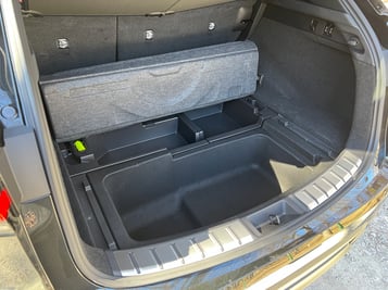 Cargo space increases 14% with the second-row up with the redesign. Power controls are located in the cargo area. There's also extra hidden storage space underneath the cargo floor.