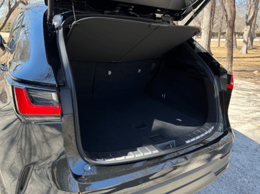 The optional hands-free power lift gate with a kick sensor makes loading easy. There is no spare tire, the NX is equipped with run-flat tires instead.