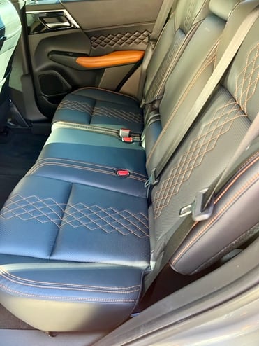 The leather seats are not only beautiful, but comfortable, with diamond designs on them that match the door panels. Stitching is everywhere, including across the dash.