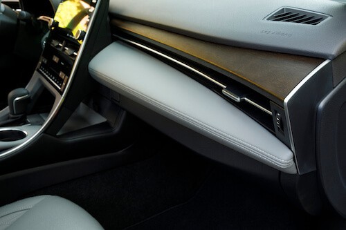 In the middle of the stitched dash you find a 9” touchscreen that houses the simple-to-use Toyota Entune system. From there, you operate the 14-speaker JBL sound system, the navigation system, Apple Car Play, Bluetooth, and backup camera. Android Auto is not available yet, but the system is compatible with Alexa. It will allow you to talk to your home Alexa from your car and vice-versa.