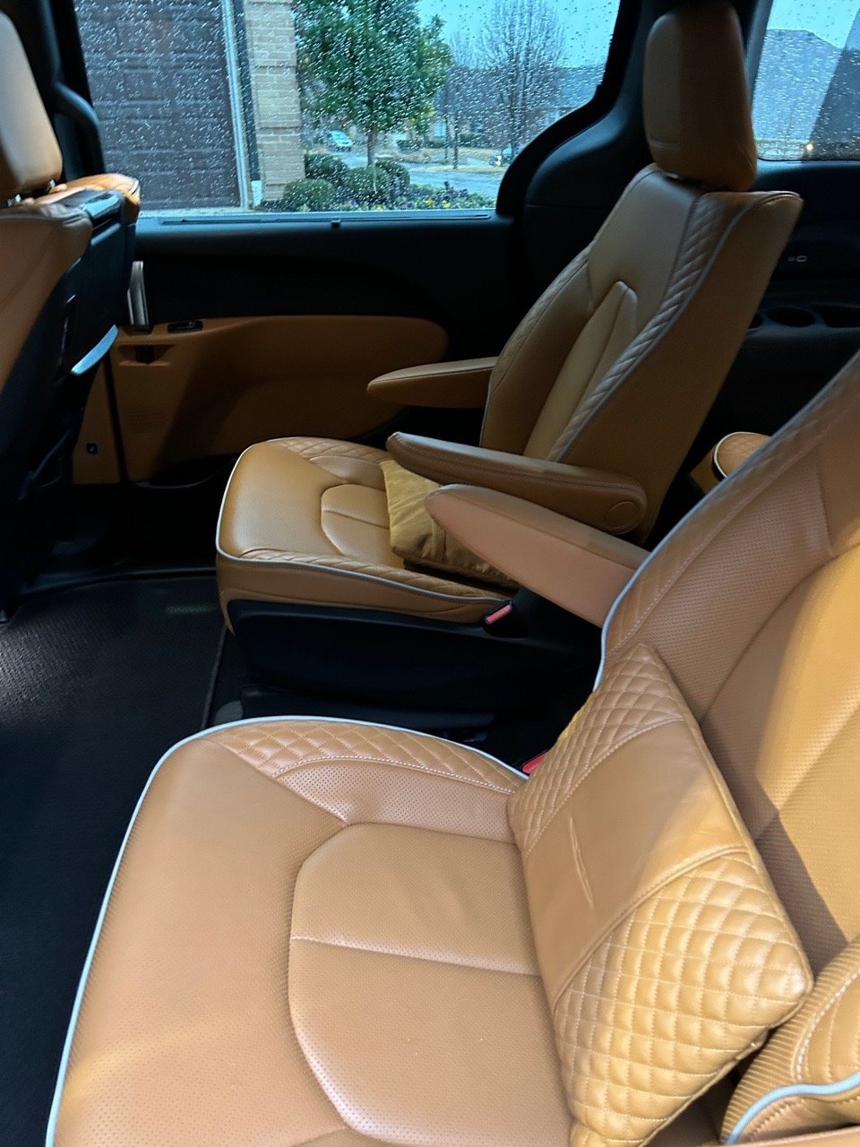Inside the van, you’ll find very welcoming seating for seven people. Being a minivan, the ride height is low and makes it very easy to enter through the key fob-controlled power sliding doors on both sides. Since the vehicle has captain chairs in the center row, getting to the 3rd row seat is easy as well.