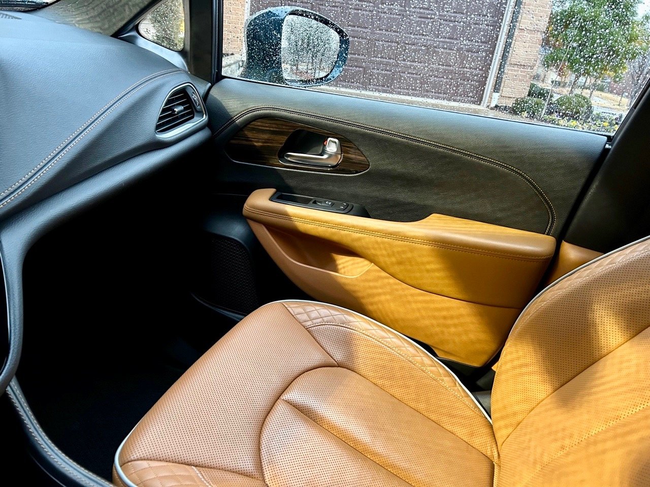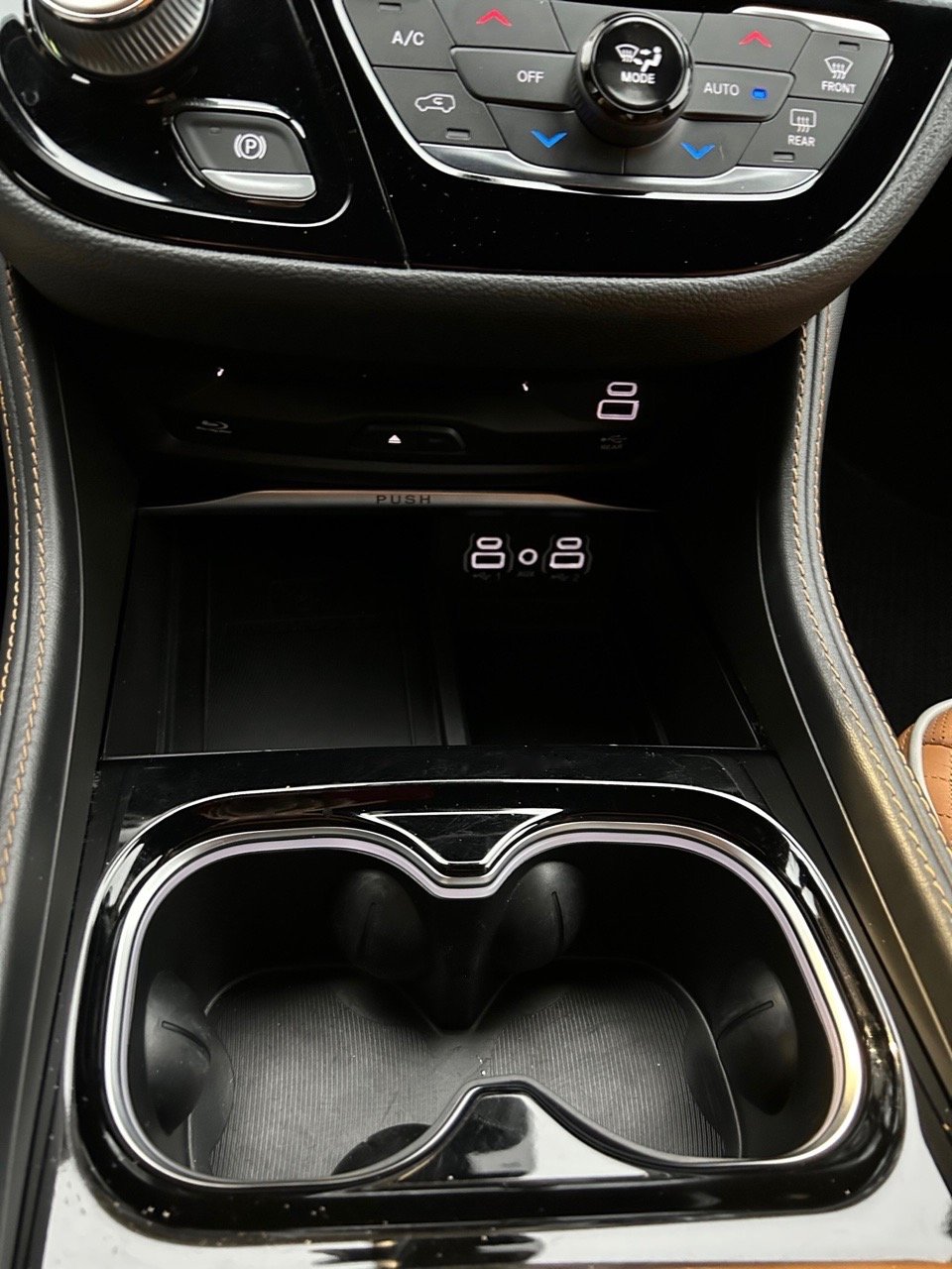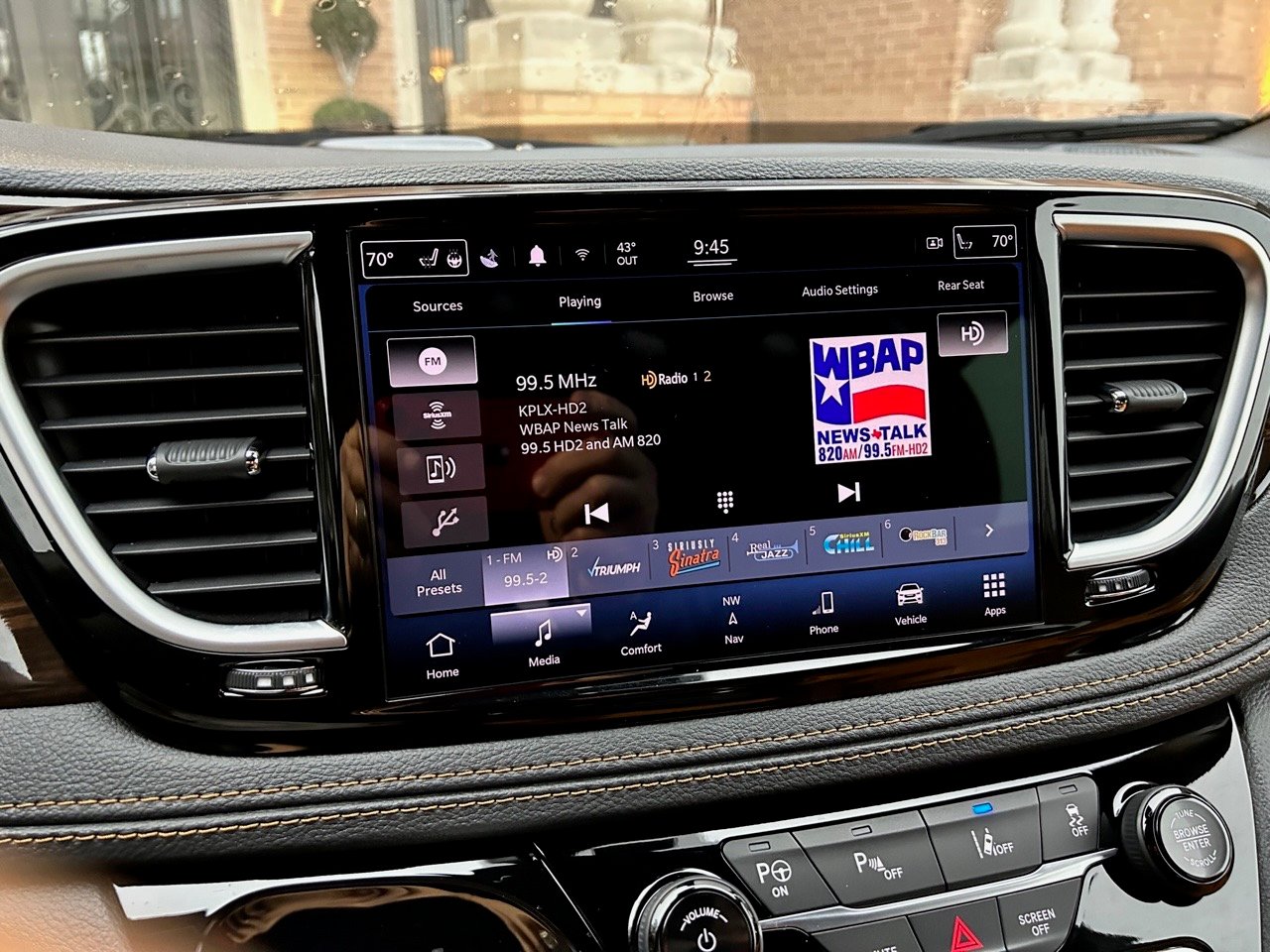 High on the center stack is the terrific 10.1” Uconnect 5 navigation screen. It operates the 20-speaker Harmon Kardon sound system, the nav, the Bluetooth, Apple CarPlay and Android Auto and check out the Fam Cam that checks on rear occupants. There are a host of apps that provide real-time information. Below the screen are controls for the parking systems and the air conditioning systems.