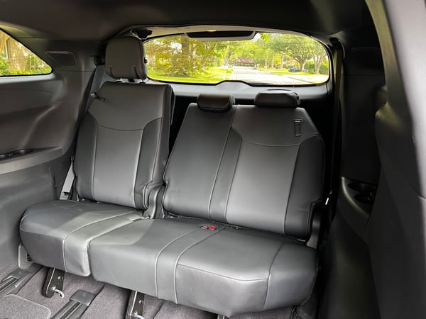 The XSE seats seven, since it's equipped with Super Long Slide captain's seats in the 2nd row. They slide an amazing 25 inches, so there is no lack of legroom. It does take a bit of muscle to slide the manually operated seats back and forth.