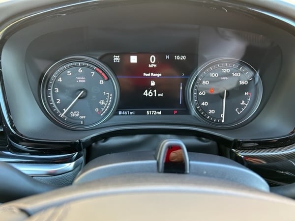 A bright, colorful dash greets you when you sit behind the power and heated tilt steering wheel with controls. In the center of the large tachometer and speedometer is the driver information system that is controlled from the steering wheel and gives the driver a ton of information.