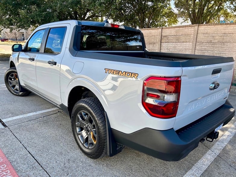 The Tremor has unique head and taillights, special 17” wheels and tires, tow hooks on the front, and it also has a 1-inch lift from the factory for better off-road capability. The suspension system is different on the Tremor..jpg?width=783&height=587&name=2023-Ford-Maverick-Tremor-badge-carpro%20(1).jpg)
