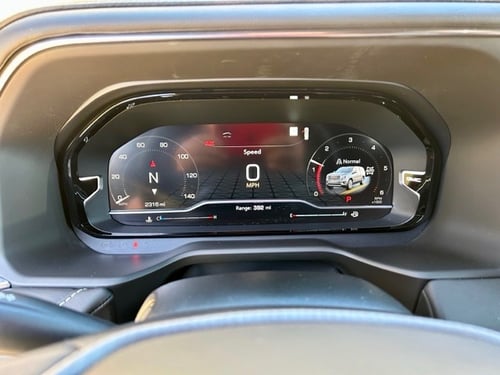 From the driver’s seat, you see a large speedometer and tachometer and gauges across the top that are easy to see. There is a highly configurable driver info center that you scroll through from the steering wheel.