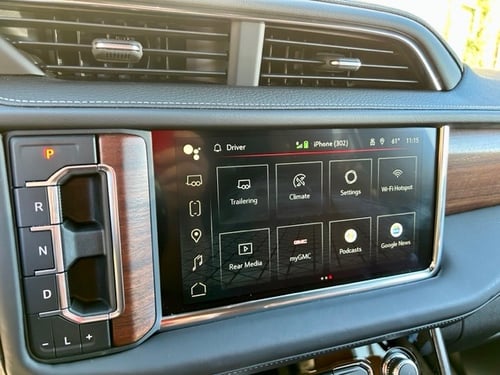 The Yukon has a 10.2-inch touchscreen that sits on the dash, which makes it easy to reach. It operates the sound system, climate control, Bluetooth, navigation, Wi-Fi, settings, wireless Apple CarPlay, Android Auto and even Alexa.