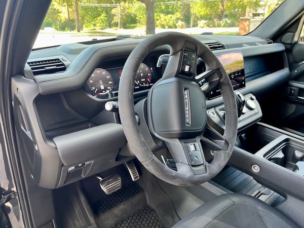 The Defender drives fantastic, acceleration with the big Supercharged engine is strong, and it feels substantial and heavy, which it is. The ride quality is great thanks to the terrific air suspension system that Rovers are known for.