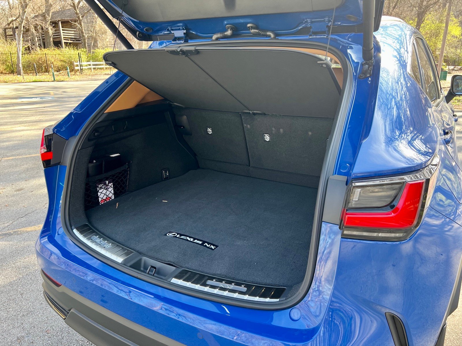 The NX Luxury's power kick sensor lift gate opens at a nice speed to an impressive amount of cargo space. A tonneau cover hides your valuables. There is also some under storage beneath the cargo floor for the electric charger or other items.