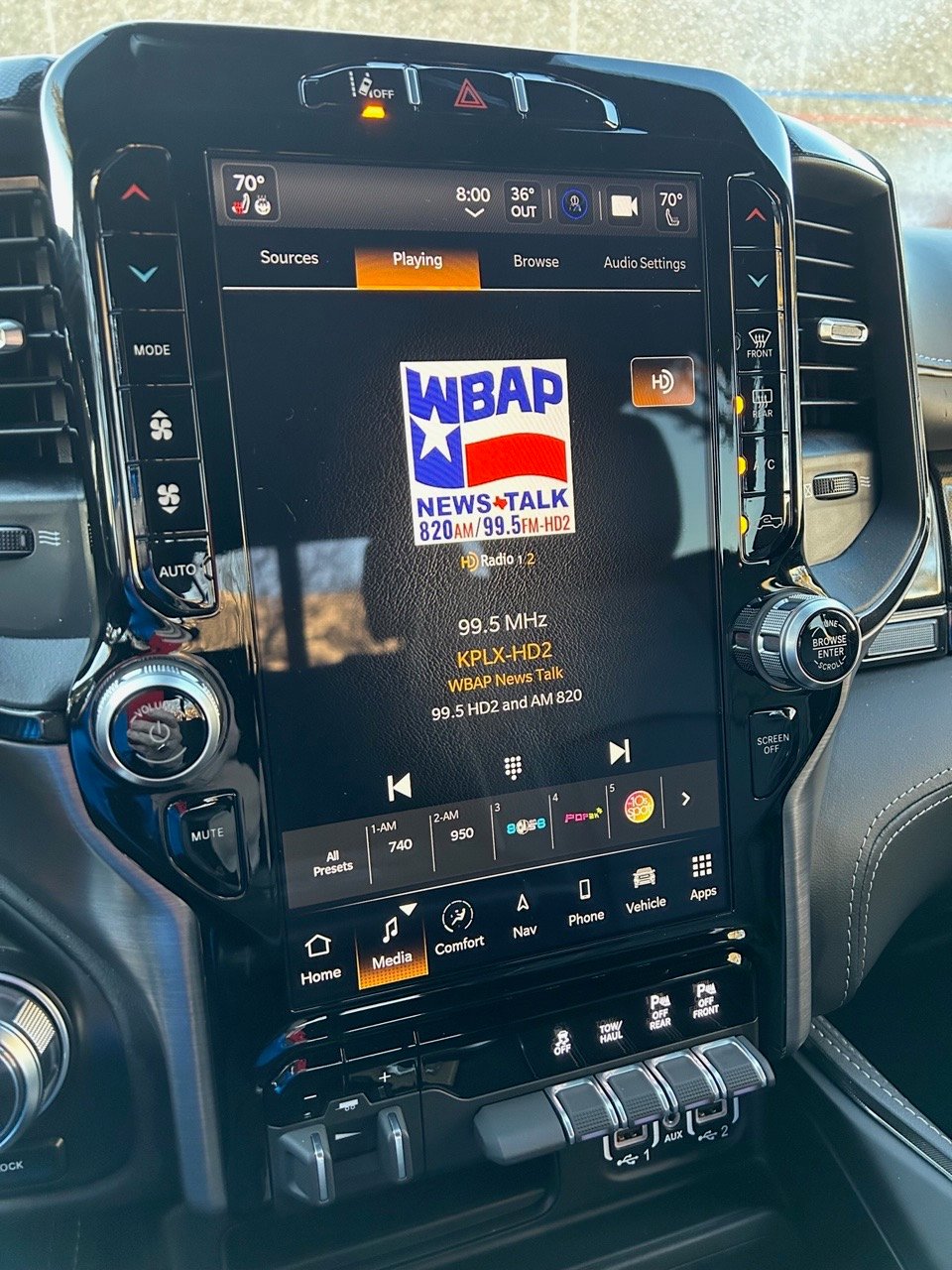 The UConnect system virtually operates everything including the 17-speaker Harmon Kardon sound system, Bluetooth, Apple CarPlay, Android Auto, a cell phone charger, a Wi-Fi hotspot, and a host of apps you can personalize.