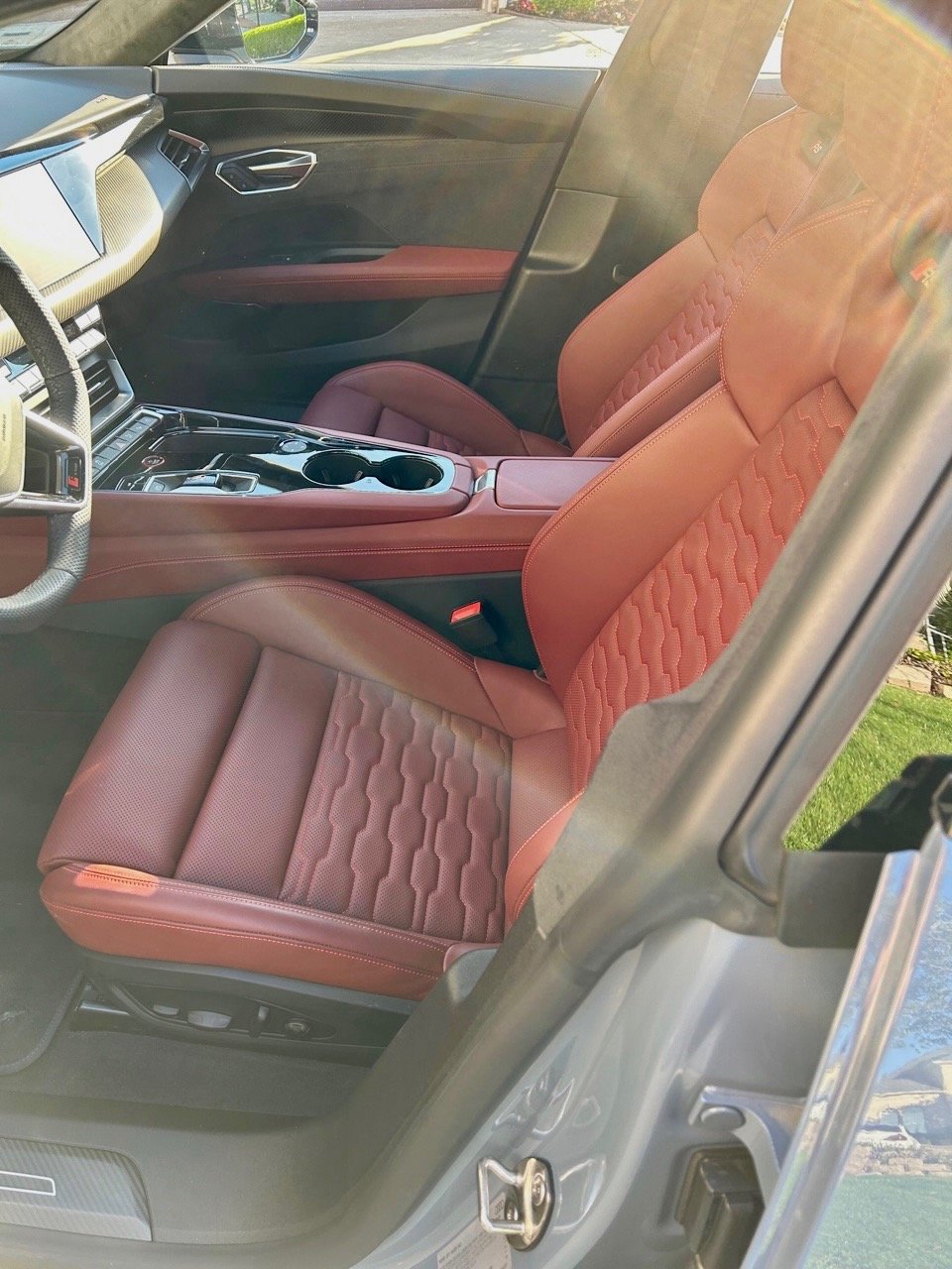 This Audi has caught people’s attention everywhere I’ve been with beautiful 21” wheels, a deployable rear spoiler, a carbon fiber roof, and beautiful body lines. It sits low and has a very wide stance. It shares many of the same elements of its sister vehicle, the Porsche Taycan electric.