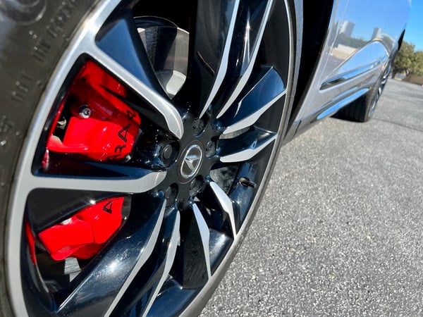 The Type S has a new front fascia with a more aggressive front spoiler, functional side air inlets, and an open-surface Diamond Pentagon grille that increases air flow to the engine bay. It flanks Acura's Jewel-Eye LED headlights. The Type S also features black-out trim and rides on 21-inch alloy wheels with Acura's first use of self-sealing tires. You'll also spot red Brembo brake calipers, always great to see. In back you find quad exhaust finishers and on top the Advance package adds roof rails.