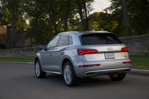 Much of the Q5’s car-like stance, I thought, came from optional 20-inch multi-spoke wheels wrapped with substantial 255/45 tires that filled the wells. (Eighteen-inch wheels and 235/60 tires are standard.)
