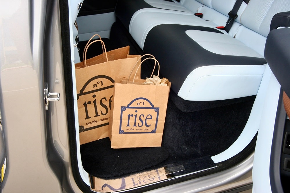 The back seat passengers will enjoy lounge seats as well as their own drop-down picnic tables and entertainment system with 12-inch high definition touchscreens mounted in the back of the front seats. A rear-seat drop down center console hides two cup holders, and it also reveals a pass-through area to the trunk. There are lambswool floor mats and even the carpeted trunk is wow-worthy - with the touch a button on the key fob it can extend out to become a full tailgate affair.