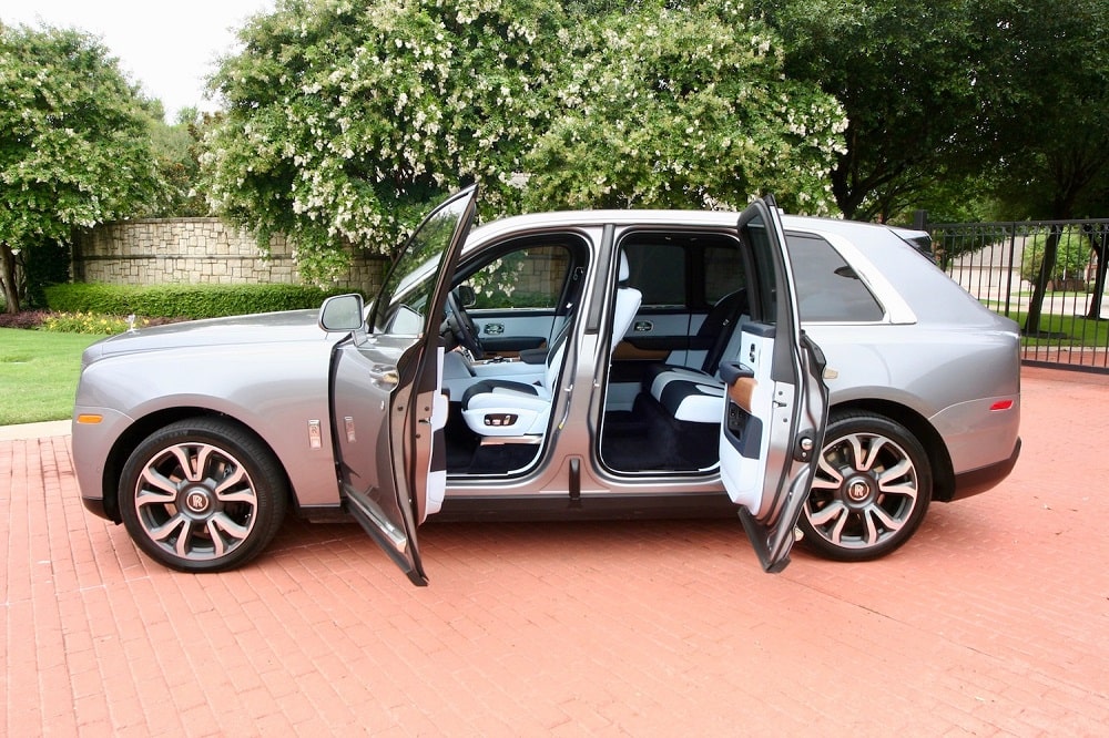 The electronically-retracting and illuminated Spirit of Ecstacy grille ornament reigns like a crown on the hood. Laser headlights light your way with LEDs in the back, along with dual chrome plated exhausts. You figure out what’s so cool about the Cullinan pretty quickly. The front and rear “suicide” coach doors with soft-close latches have to be number one on that list. Open them both and it is truly a sight to behold, and the doors also house deployable umbrellas.